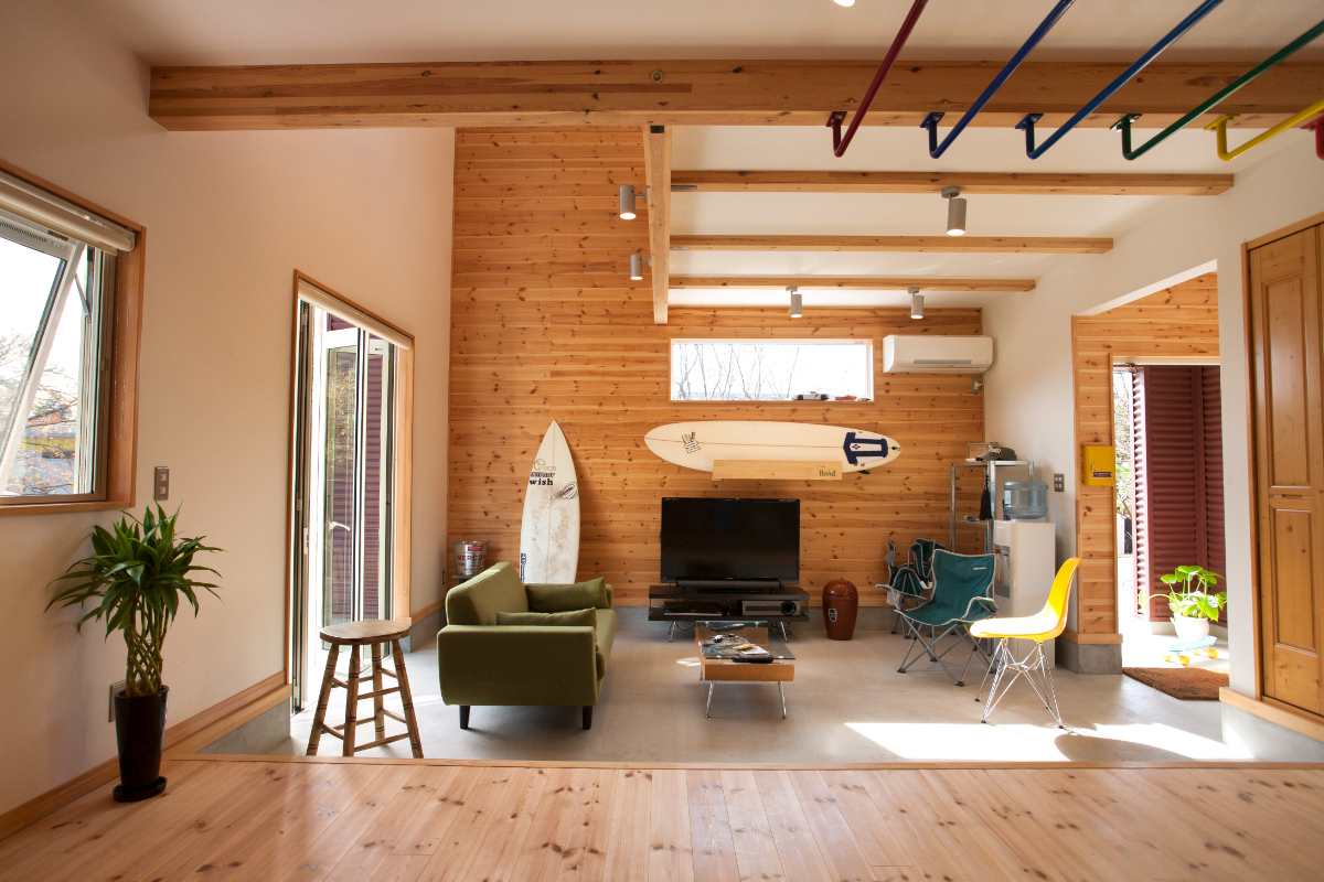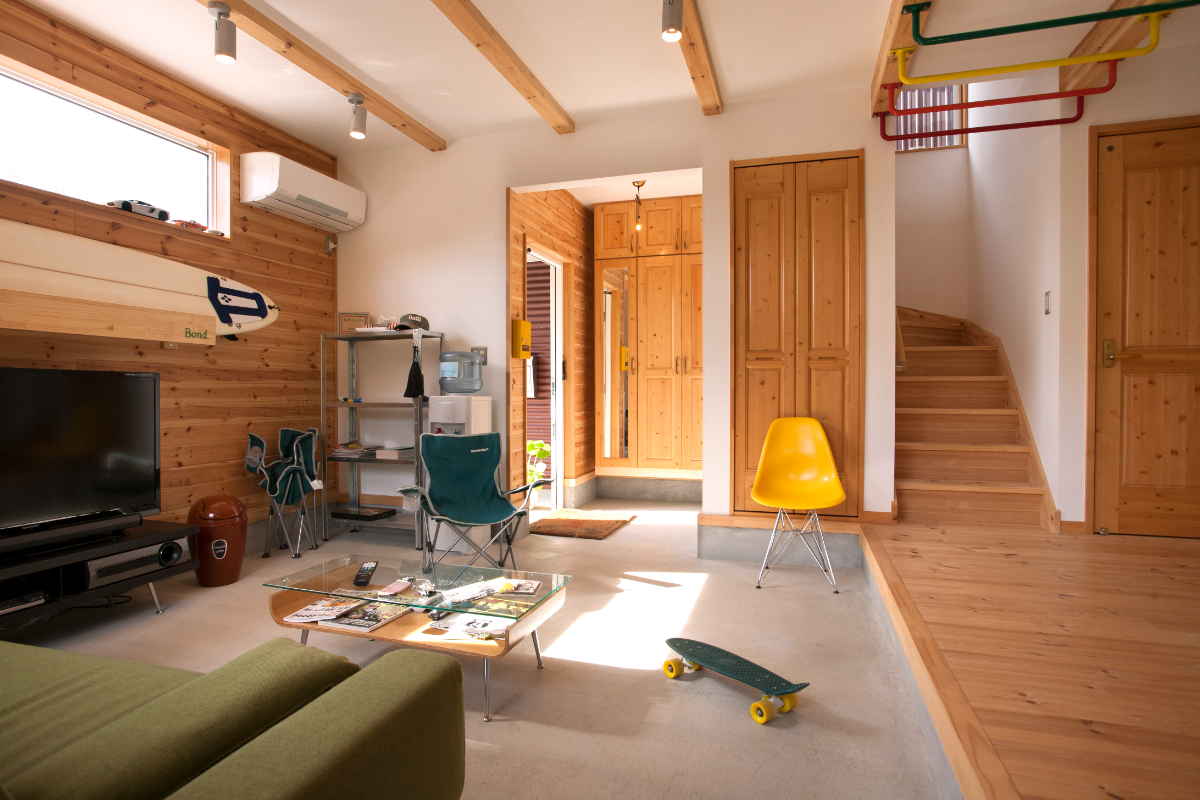 アウトドア好きにおすすめ、土間リビング。